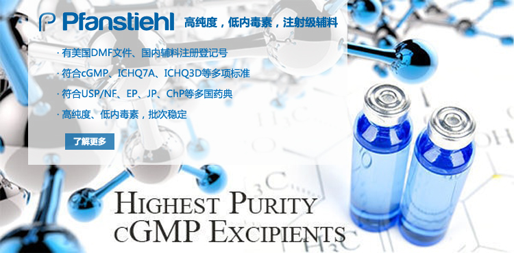 “熱烈祝賀Pfanstiehl的注射級甘氨酸Glycine(G-140)喜獲CDE登記號F20250000403, 這是Pfanstiehl產品獲得的第18個CDE登記號!”甘氨酸在醫藥輔料制劑中應用廣泛,, 可作為緩沖劑,增溶劑,穩定劑等,具有諸多優勢。Pfanstiehl秉承一貫高品質理念,為滿足全球生物制藥行業對于高品質甘氨酸的需求,隆重推出的注射級甘氨酸Glycine (G-140), 具有超高純度,超低內毒素,超低金屬殘留的特點,單獨檢測29種金屬離子,并且新增DNA,RNA,DNA酶,RNA酶和脂肪酶,亞硝酸鹽等多項質量指標的檢測,符合多國藥典規定(USP, EP, BP, JPE, ChP),可用于生物治療性藥物和疫苗的生產。產品信息:· 產品名稱:Glycine, High Purity, Low Endotoxin, Low Metals, USP, EP, BP, JPE, ChP (G-140)· 中文名稱:甘氨酸· 分子式:C2H5NO2· 分子量:75.07 g / mol· CAS號:56-40-6· 產品貨號:G-140產品特點: · 超高純度,超低內毒素,超低微生物含量,超低金屬雜質殘留· 質量指標新增DNA,RNA,DNA酶,RNA酶,脂肪酶和亞硝酸鹽檢測· 符合多國藥典:USP, EP, BP, JPE, ChP· 符合ICH Q3D標準· 符合GMP標準· 已獲DMF和CDE登記號 產品應用:· 緩沖劑· 穩定劑· 增溶劑如果您對Pfanstiehl注射級別Glycine G-140感興趣,歡迎聯系Pfanstiehl 中國區代理商北京西美杰科技有限公司獲得如下詳細的產品概況說明文件和測試樣品。Pfanstiehl Inc.最新產品系列如下,歡迎聯系北京西美杰科技有限公司獲取100g裝免費樣品。北京西美杰科技有限公司為Pfanstiehl中國代理,為客戶提供完善的技術支持與售后服務。歡迎撥打西美杰客服電話400-050-4006或者登陸網站www_xmjsci_com.yxeudm.mobi了解更多信息。 更多>西美杰介紹